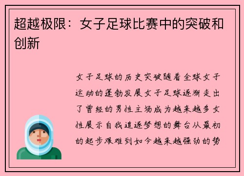 超越极限:女子足球比赛中的突破和创新